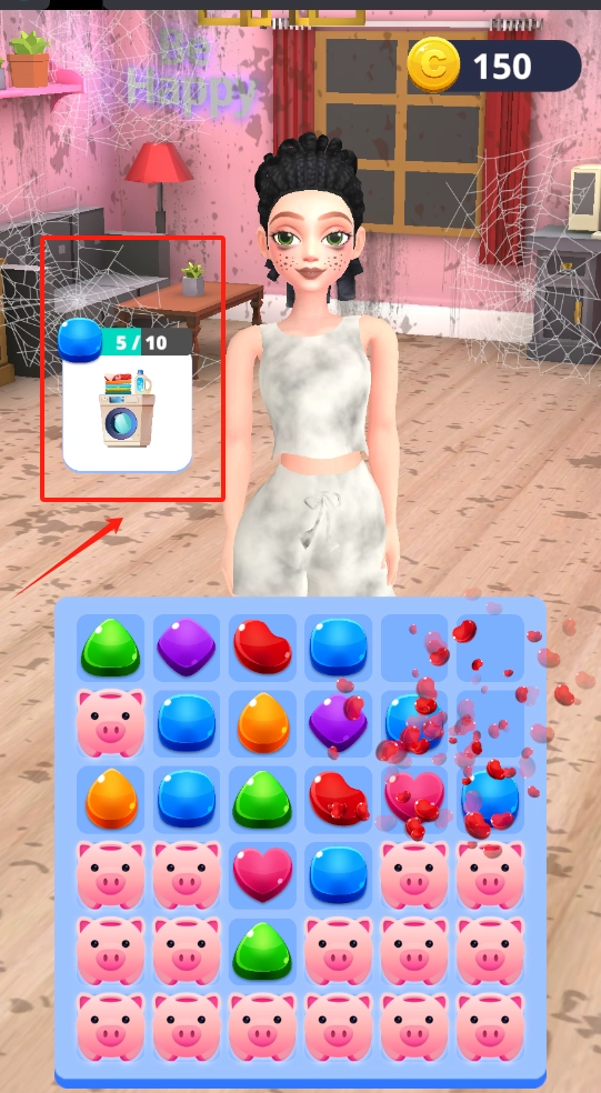2、收集每次消除获得的金币,解锁合成更高级的美妆道具与家居物品。