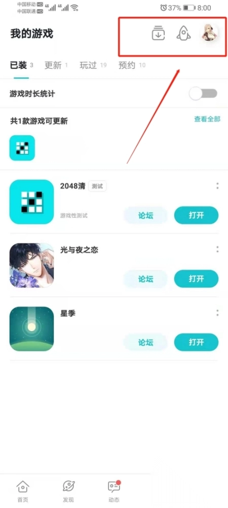 5、我的游戏:已经在手机上面安装的游戏显示,同时还有游戏更新的推送提醒;