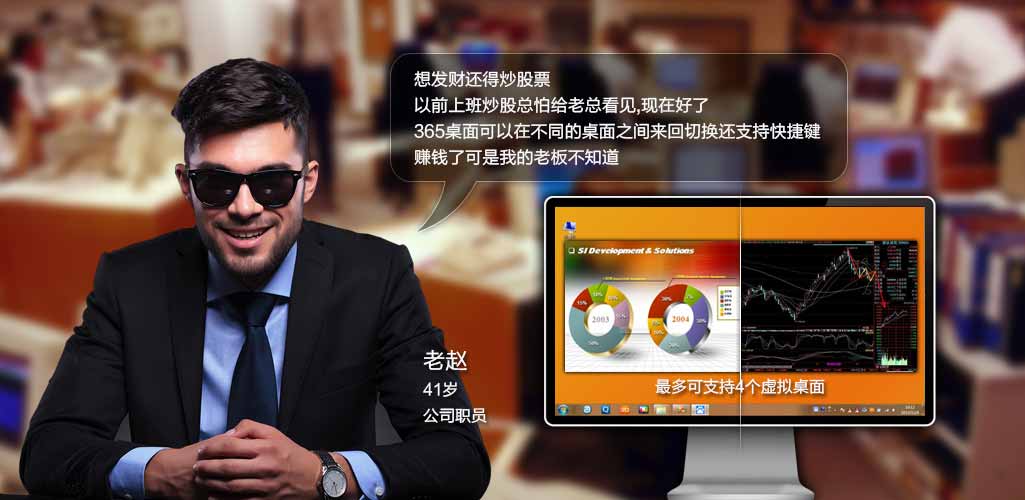 4、4个虚拟桌面,每个桌面都可以显示不同的任务,一键切换,瞬间保护你的隐私空间;