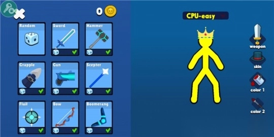 2、在游戏开始前,不妨先设置一下你的火柴人皮肤与装备,点击屏幕右侧就能操作。