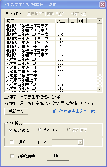 丰富的学习资源:汉语2500个常用字以及1000个次常用字,小学语文各年级生字表等。