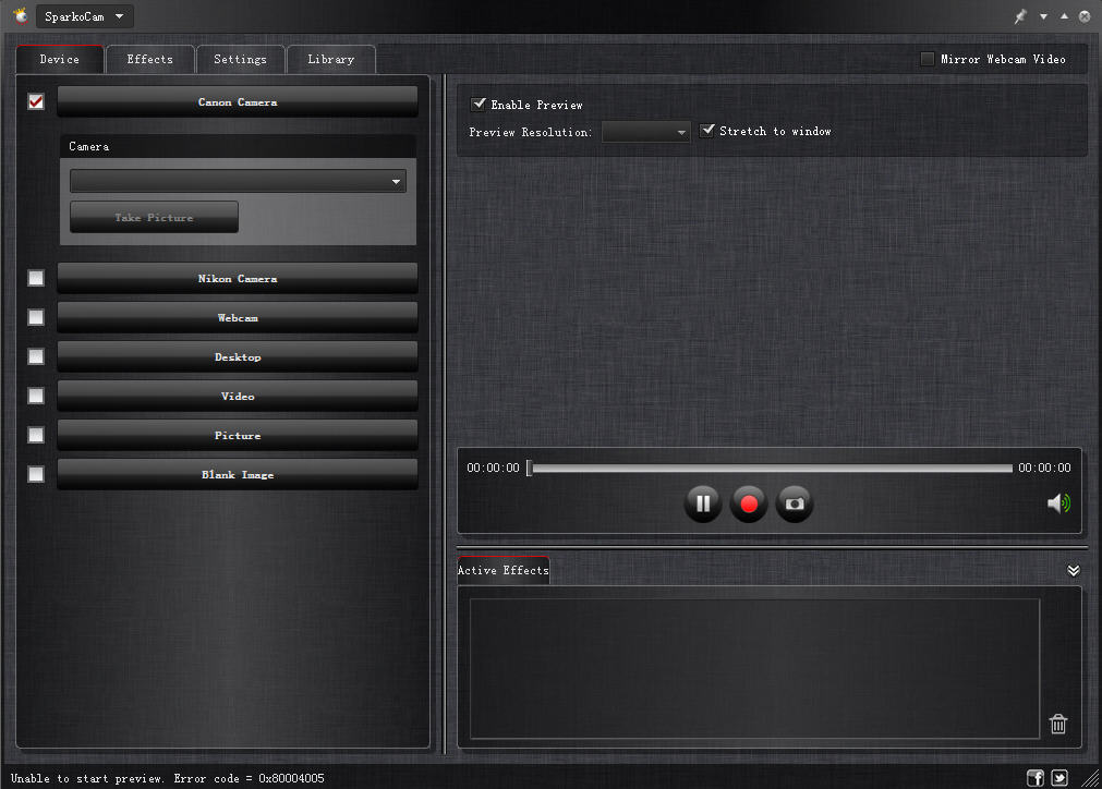 SparkoCam中你可以将好的特效和GIF动画添加到网络摄像头,通过立体眼镜观看,享受立体3D效果,播放视频文件,聊天和更多可能性。【软件特色】