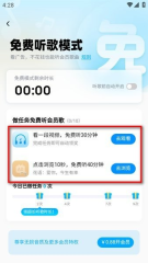 进入模式后,只有选择做任务才能免费收听会员歌曲,任务主要涵盖观看视频以及点击浏览100秒。