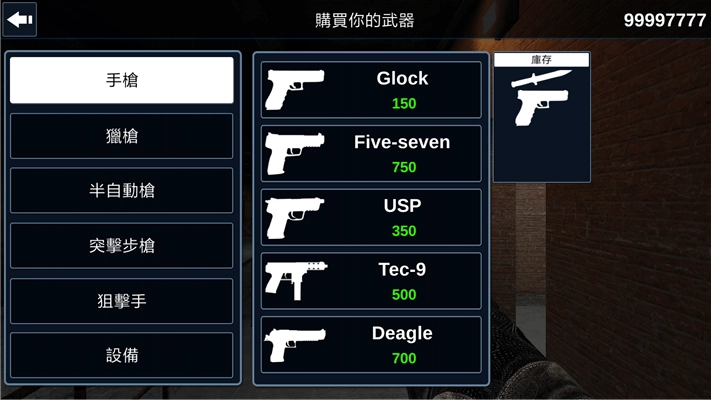 手枪:包括USP,Kroc 18,Desert Eagle,BerettaElite,P228、5-7。