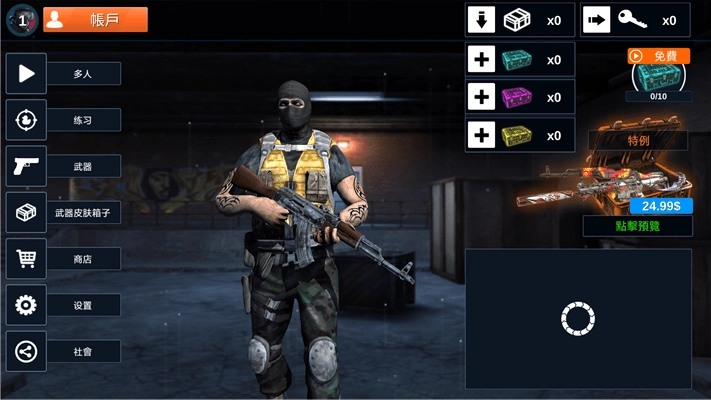 《反击计划》国际服是一款以第一人称视角展开的枪战射击类游戏。在这款游戏中,玩家能够自行探索体验多张风格各异的地图。游戏模式丰富多样,不仅设有单人AI战斗模式,让玩家与智能AI展开较量,提升自身战斗技巧;还具备多人竞技模式,玩家可与其他玩家同场竞技,感受激烈对战的乐趣。玩家在游戏里能够使用形形色色的武器,尽情投入到紧张刺激的枪战对决之中。此外,游戏还提供了多种别具特色的玩法模式,既有考验枪法精准度的爆破模式与团战模式,也有趣味十足的僵尸模式等,满足不同玩家的多样化游戏需求。