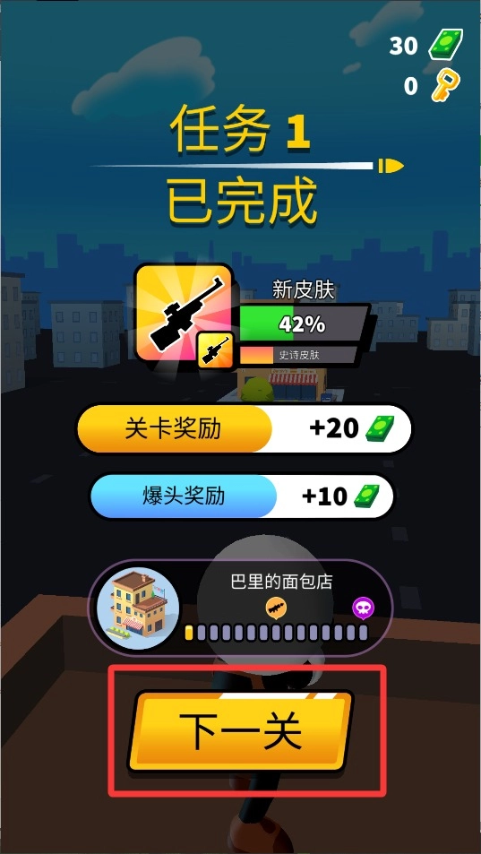 4、顺利完成任务会给金币和经验,攒够了能买更好的狙击枪,玩得越久枪法越准奖励越多。