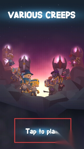 1. 在主界面点击【Tap to play】,即可进入游戏,体验【VARIOUS CREEPS】玩法,操控角色,开启冒险之旅。