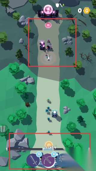 3、战斗中,关注上下红框区域,上方集火敌方据点,下方控技能释放,配合单位,赢取关卡胜利。