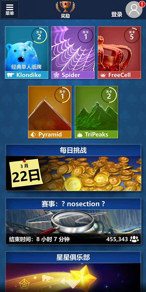 微软纸牌游戏下载(Solitaire)乃是 Windows 系统自带的纸牌游戏合集之作。如今,它已顺利移植到安卓手机端。相较于 PC 端,手机版游戏不仅集合了五款经典游戏,还增添诸多新功能,像每日挑战、明星俱乐部以及主题选择功能。玩家甚至能在游戏里用自己的照片创建自定义主题。感兴趣的朋友,快来下载体验吧!