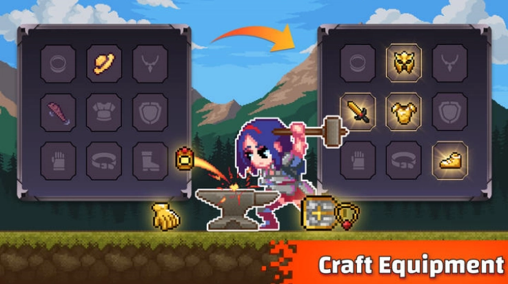 你的英雄之路由你来塑造。参与采矿以收集宝石和矿石,然后您可以在熔炉中将其熔炼并制作成强大的剑和盔甲。砍伐树木以获取木材,探索地牢以获取稀有战利品,并建造一个有助于您战斗的军火库。强大的制作系统,提供无限的机会来升级和定制你的角色。