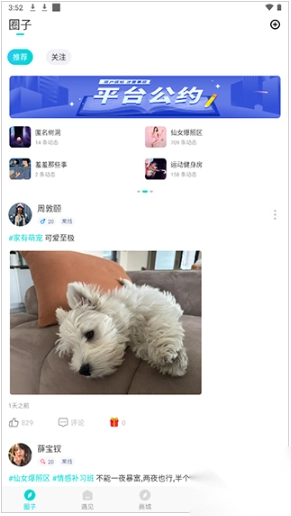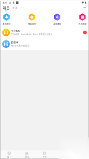 4、在消息页面,你能够对好友消息与平台消息进行集中管理,同时,所关注好友的动态也会在此第一时间展示。