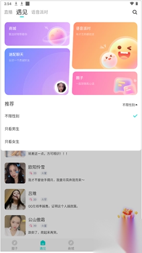3、在【遇见】页面下可以通过筛选功能快速帮你处cp