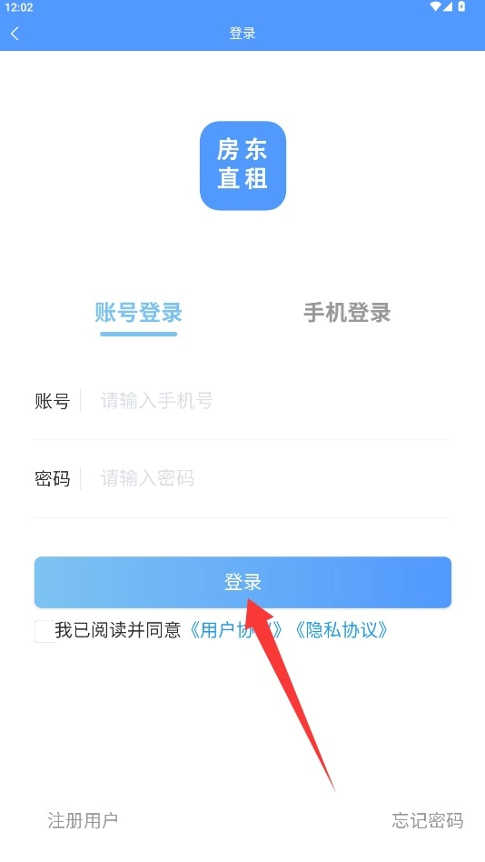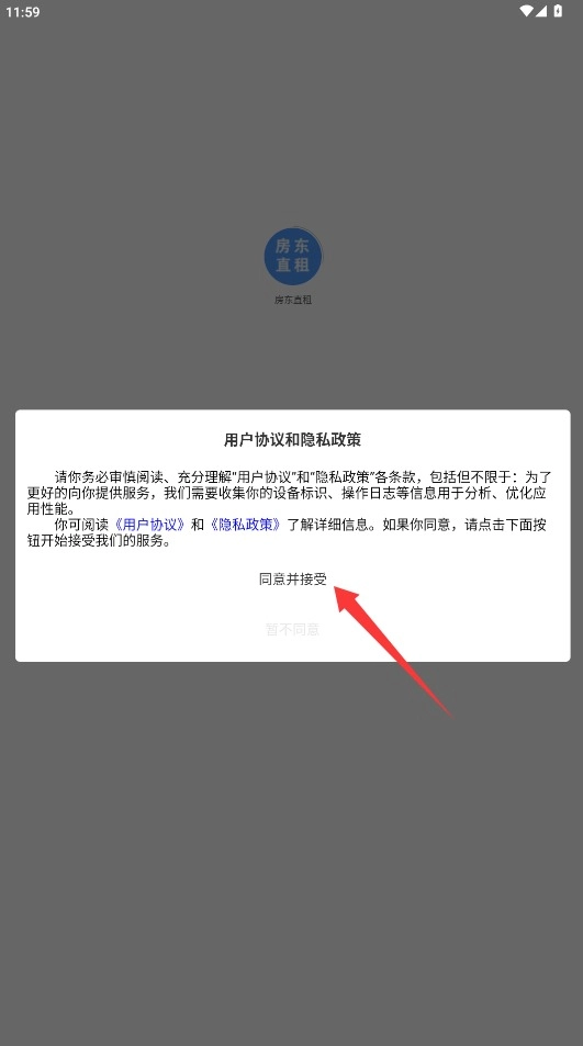1. 打开房东直租APP,认真研读用户协议,随后点击“同意并继续”按钮,进入登录页面。