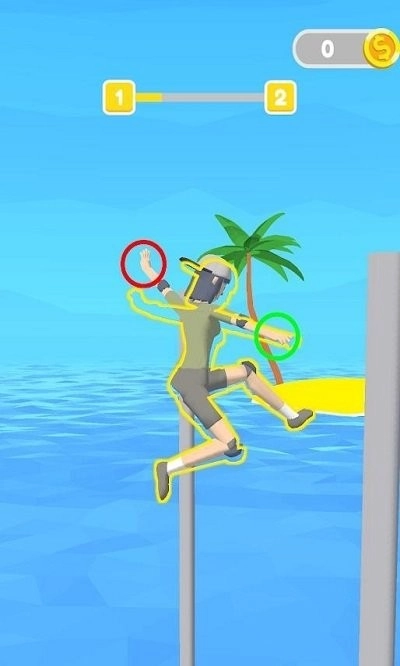 2、卡通人物正抓灰色柱子攀爬,背景进度条显示1和2,保持抓稳继续往上爬就行。