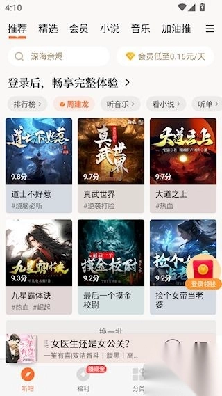 - 《盗墓笔记》《世子无双》《藏海花》《屌丝道士》全网独家,海量好书随心听;