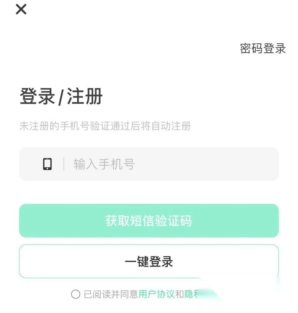 2. 点击右下角“我的”,即可跳转至该界面,在此界面完成注册并登录。