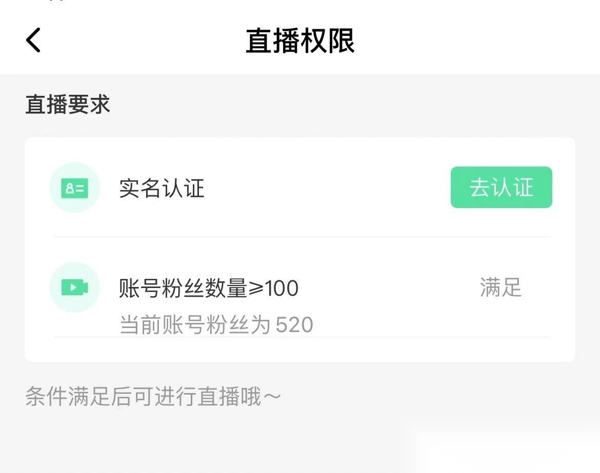 4、接下来便能看到开直播的相关要求与限制,若符合条件,点击开启直播权限,即可开启直播。