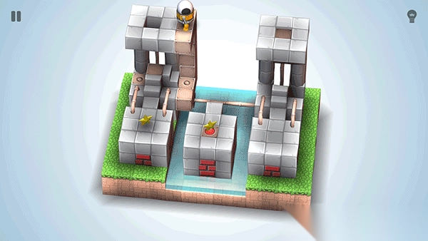2、场景中的迷宫是全3D构造,通过不断旋转场景寻找通路,以及活用场景中的物品将会是通过的关键。利用机器人当脚垫,掉落地面,用物品阻挡障碍,甚至还需要考虑时间差、力度、抛物线等问题,多种多样的解谜方式让人大呼过瘾,观察、思考、动手三大解谜要素在这里一览无余。初始游戏自带50个风格迥异的场景,绝对让人玩的开心。