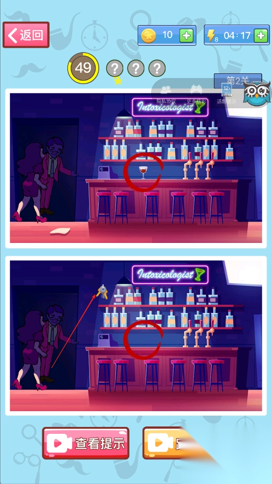 2、闯关时,留意场景中的人物、物品摆放及环境细节,有些线索较为隐蔽,需结合关卡提示,发挥联想推理能力去发现。