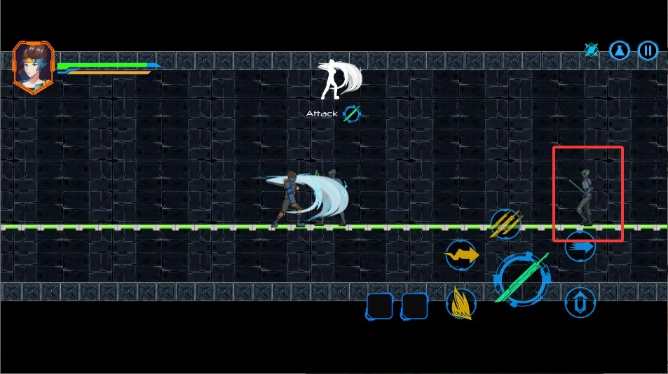 2、遇到敌人时,迅速点击右侧功能键发动攻击,连续点击可实现跳跃动作,灵活躲避怪物袭击并反击。