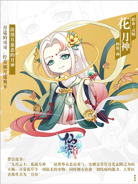 花月神年纪最小的妹妹,正值青春期,整日都带着一副惆怅的神情。别看她只是个小小的女仙,内心实则怀揣着一颗匡扶正义之心。