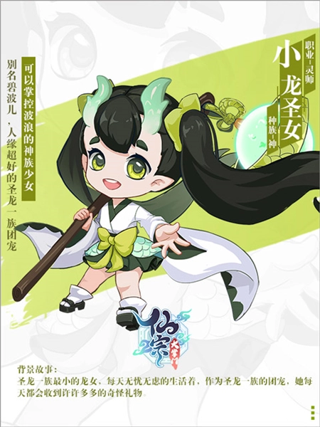 角色设定:喜欢扎着长长的双马尾在神界游荡,仙缘超好的小可爱