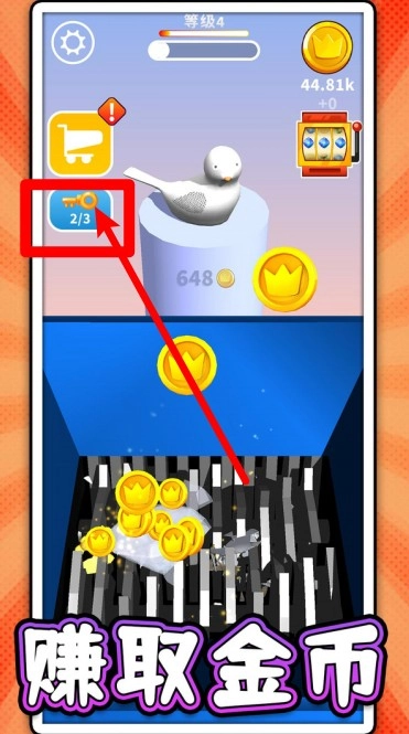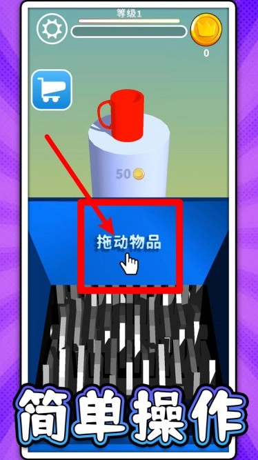3. 拖动物品进行粉碎:在“拖动物品”区域点击并拖动物品至下方的粉碎机中,物品粉碎成功后,可获取金币与升级经验。