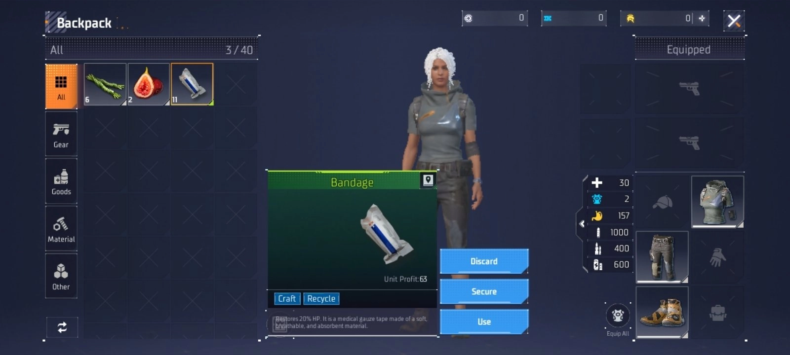 玩家在游戏中也会饥饿和受伤,记得使用背包里的物资