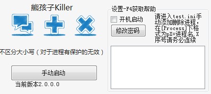 进程关闭隐藏工具(熊孩子killer)是一款体积不到60KB的进程隐藏器,能够有效的关闭或者隐藏当前系统进程,防止他人查看自己的隐私,进程隐藏器当然对于制止小孩子玩游戏也是非常有效的哦。
