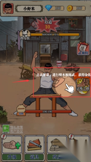 2. 轻点屏幕劈木板,提升力量即可赢取金币奖励。