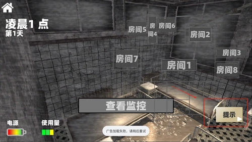 3、每晚结束前收集足够线索解锁下一阶段内容,玩家也可以使用提示功能降低难度,同时注意保存电力资源,避免因断电导致危险发生。