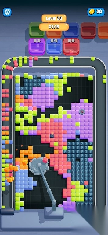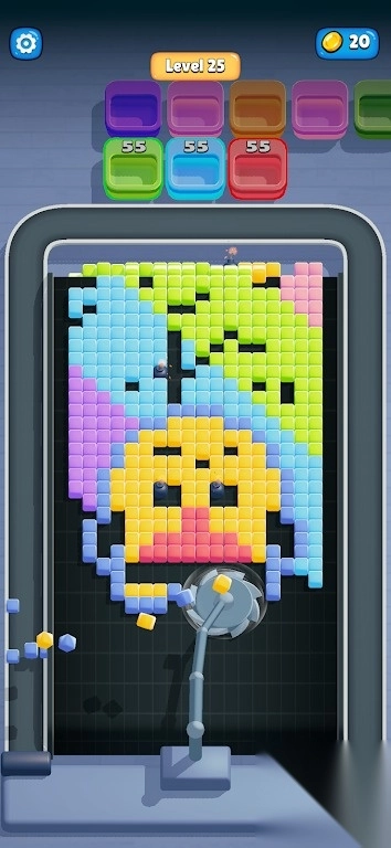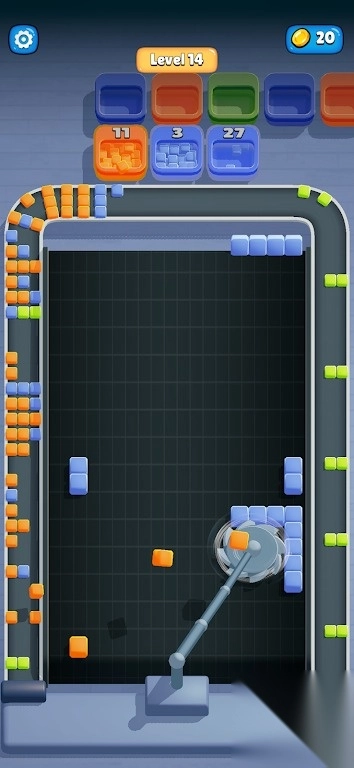1这是一款把切割消除作为核心玩法的闯关类游戏,玩家要操控位于底部的切割机,去击碎传送带上的彩色方块,进而达成关卡目标。