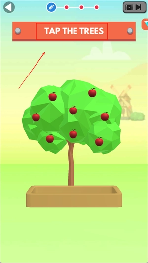 3、这关就是要我们快速的点击树,将苹果采摘下来。