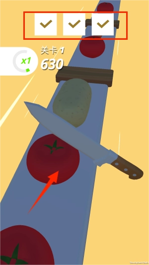 3、注意不要切割到木头或者枕头等等其它的障碍物哦,完成关卡内的切割任务就可以过关了。