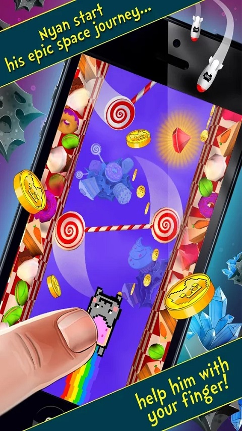 彩虹喵之太空旅行是一款像素风格的休闲益智游戏,彩虹喵之太空旅行安卓版玩法非常简单,只需用手指控制可爱的彩虹喵越过重重障碍,抵达胜利的终点。游戏拥有绚丽的色彩,奇葩的音效,让玩家爱不释手。
