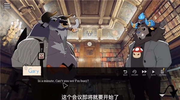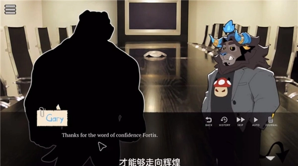 4、走进会议室,与形形色色身份不明的人物交谈,这些人物的立绘在前期无法查看,后期会逐个解锁。