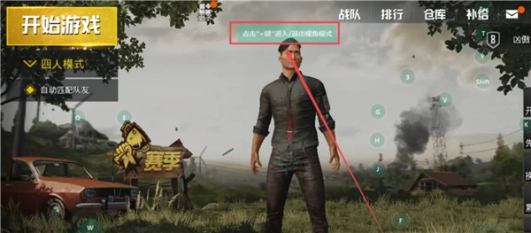 1、刚进入游戏,中间上方就有一行提示:按~键进入或退出视角模式。