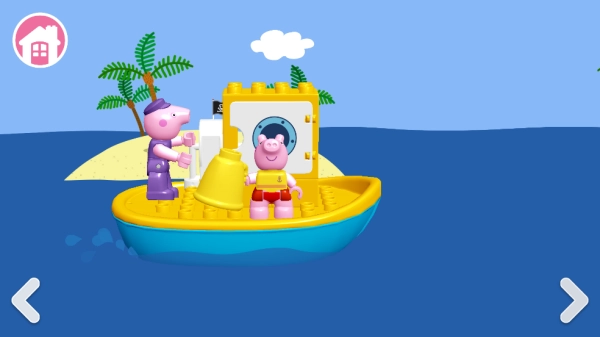 3、小猪佩奇一家全部乐高积木的形式出现,与他们互动做游戏,寓教于乐,学习玩要