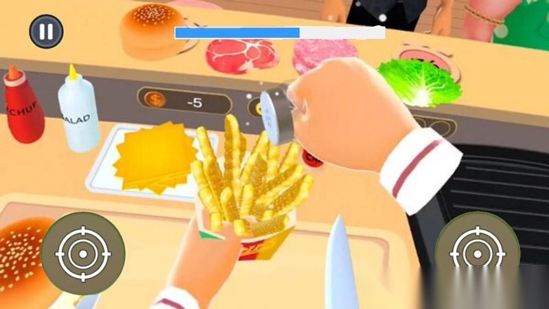 1. 依据顾客订单,借助食材与厨具,依照步骤制作汉堡、薯条之类的美食,以应对形形色色的顾客,考验玩家的策略思维能力。