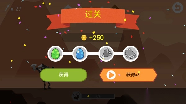 6、当全部的野兽都消灭是,我们就成功过关,然后在关卡结算界面,点击中间的箭头按钮可以开始挑战下一关。