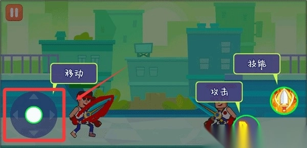 3、开始游戏后,可以看到左边是移动,右边是攻击和技能按键。