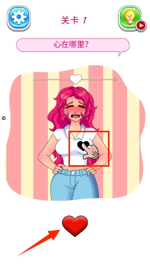 1、下载游戏完成后,可以通过手机号注册登录,关卡1你需要找到心的位置。