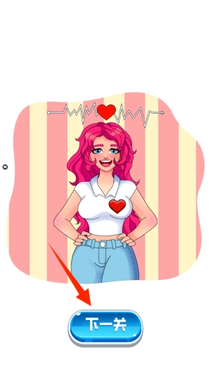 2、拖动下方红色的心,将它拖动到对应的位置,既可以完成闯关啦。