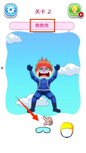 3、当顺利通过第一关后,便能开启第二关啦。在这一关中,你需要救救他,快展现出你的聪明才智,大胆来试一试吧。