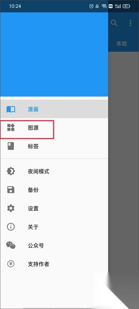 2、在弹出来的侧边栏里,找到“图源管理”这一项,点击进入图源列表页面。