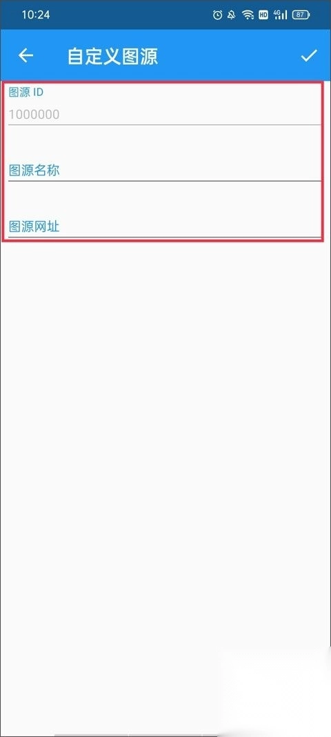 4、最后按照要求填写图源信息,包括图源ID、图源名称、图源网址等,确认无误后点击右上角的“对钩”保存即可。