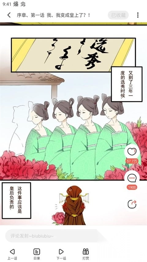 1、打开漫画后,随便点一下屏幕中间,菜单就会弹出来。