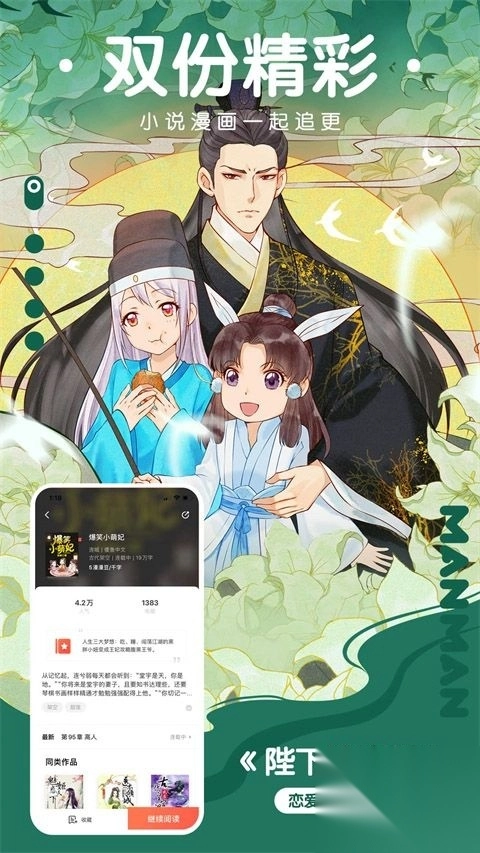 在这里,不仅可以畅快看漫画,还能够尽情读小说!热门IP漫画的原著作品,以及与之同名的小说,都在同步更新,让你一次就能尽享两种乐趣~
