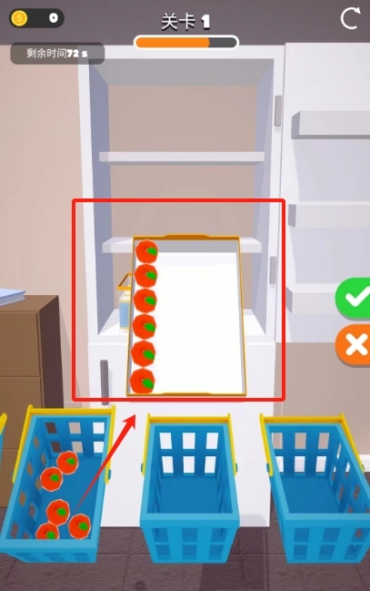 2、渐进式难度设计,从简单的冰箱整理到复杂的整体厨房收纳,游戏难度循序渐进,让玩家逐步掌握收纳技巧。