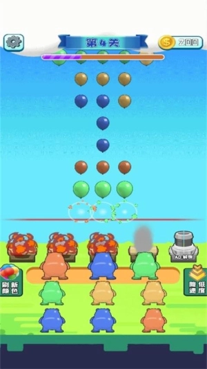 1. 彩色气球不断从空中落下,玩家需在气球触碰到底线之前将它们全部清除,否则就会失败,这十分考验玩家的反应速度与预判能力。